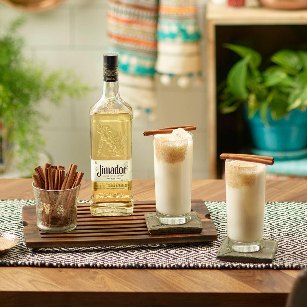 Hip, Hip, Horchata! Combine el Jimador Reposado, horchata liqueur, and horchata into shaker and dry shake. Pour over ice into a cinnamon-sugar rimmed glass and garnish with cinnamon stick.